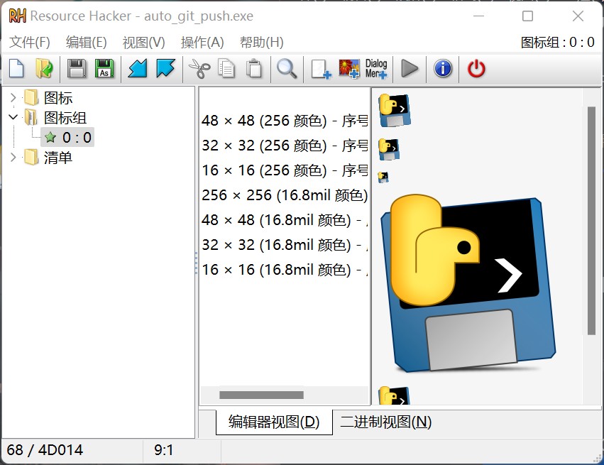 所以我就不用pyinstaller来生成图标,而是采用第三方软件resourcehacker(安装包自行百度)