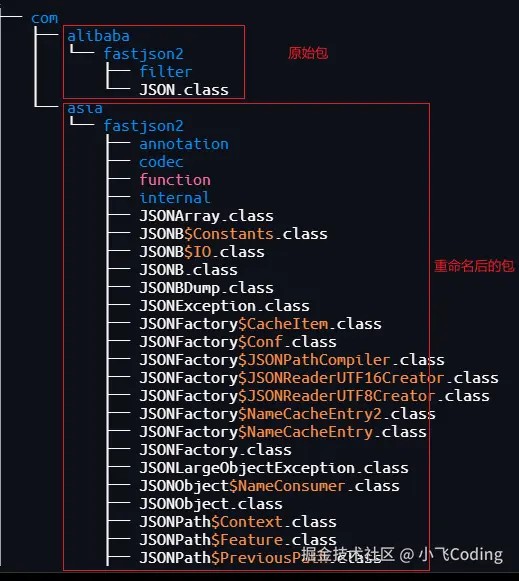 <!--在打包时,将项目中的原始包com.alibaba.fastjson2,重命名为com.asia.fastjson2-->