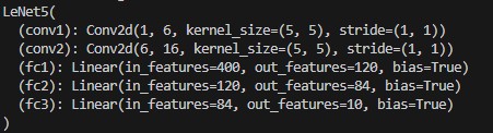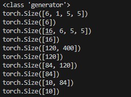对于lenet-5模型进行打印,可以看到state_dict()的类型为 <class 'collections.ordereddict'>,各层名称及参数尺寸如下图所示。