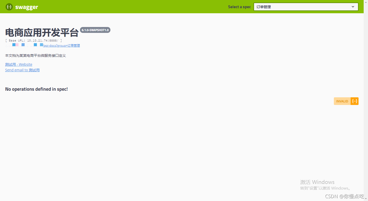 在使用时可能会出现这样的错误,No operations defined in spec!(规范中没有定义操作!)