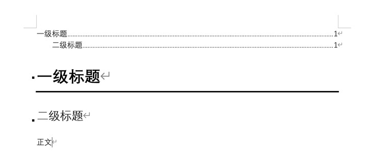 现在创建一个空白的文档,在文档中添加一级标题和二级标题,最后在文档最前面,插入生成的目录。