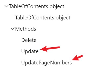 for toc in doc.tablesofcontents: #遍历所有的目录对象 toc.updatepagenumbers() # 更新页码