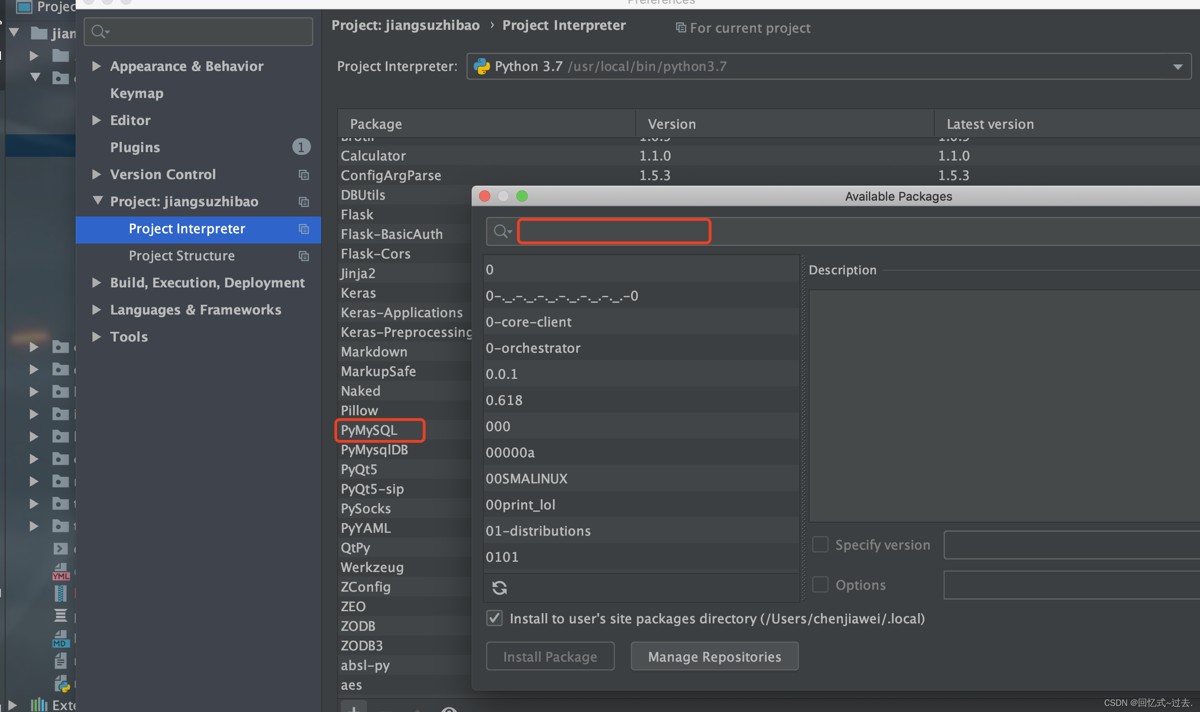 python连接mysql、postgresql数据库需要导入相关的模块,分别是”pymysql“和”psycopg2“模块,我们可以在pycharm工具中直接搜索安装对应的库然后导入即可,两个数据库连接方式基本一致,所以只拿其中一个作为演示。