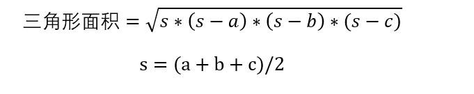 area = sqrt(s*(s-a)*(s-b)*(s-c));
