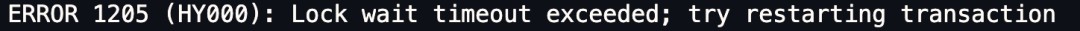 - 设置事务等待锁的超时时间。当一个事务的等待时间超过该值后,就对这个事务进行回滚,于是锁就释放了,另一个事务就可以继续执行了。在 innodb 中,参数innodb_lock_wait_timeout是用来设置超时时间的,默认值时 50 秒。