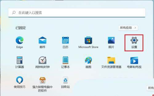 已固定应用下,找到并点击设置