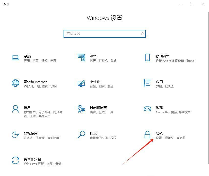 1、首先,按下“win+i”键打开设置界面,并点击进入其中的“隐私”设置。