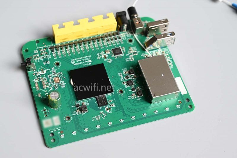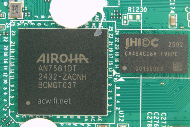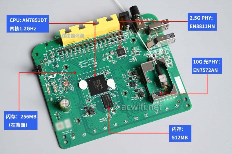 cpu是an7581dt,四核a53,频率1.2ghz,t代表扩展内存.而内存芯片是ca4s4g16v-f9hpc,ddr4-2666,容量512mb,国产晋华的内存颗粒。