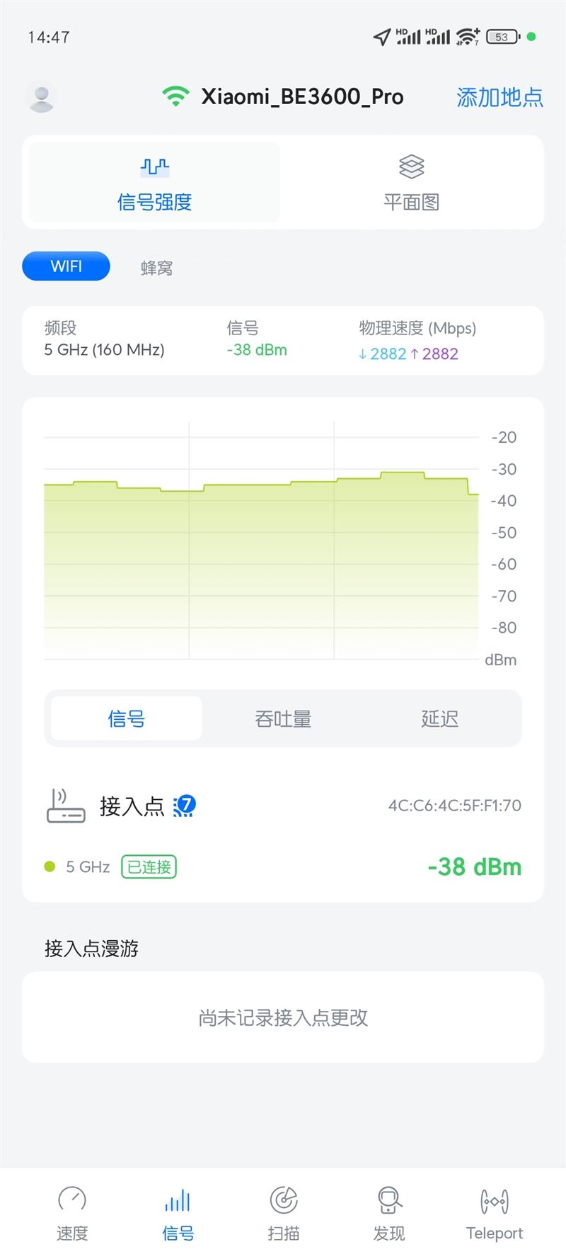 3)信号测试:自动漫游全程无感