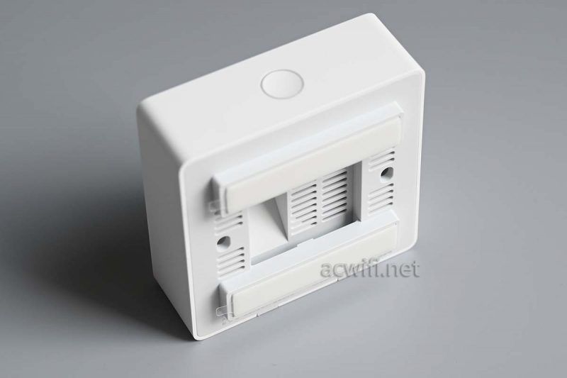 撬开底座,(如果你要用螺丝直接安装在86底盒上,就是把这个底座安装上去,然后机身压进去就行)