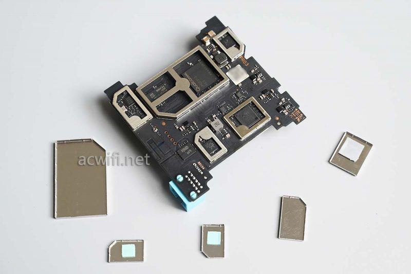 外置了两颗5g fem芯片,型号是上海康希通信的kct8540sn,它是一颗非线性fem,利用dpd算法(数字预失真),达到提升无线功率而又无需额外去增加射频外围电路元器件的成本(供电和散热),即“降本增效”。