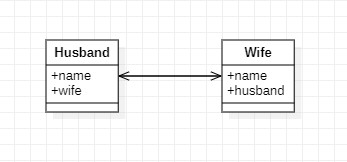 比如:丈夫类husband,妻子类wife。husband中有wife的引用。wife中有husband的引用。