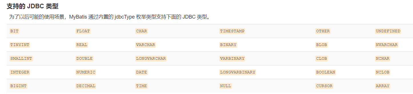 贴一下MyBatis 官网列出的支持的 JDBC 类型: