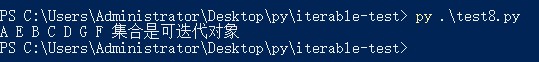 print('集合是可迭代对象')集合是无序的,所以打印出来的元素并没有按照定义时的顺序。