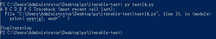 # 注意,在第一次 for 循环以后,生成器 g 的元素已经被遍历完了