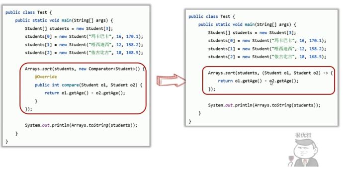 // arrays.sort(s,(o1, o2)-> o1.getage() - o2.getage());