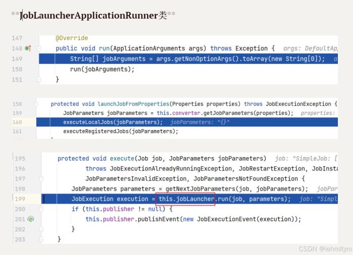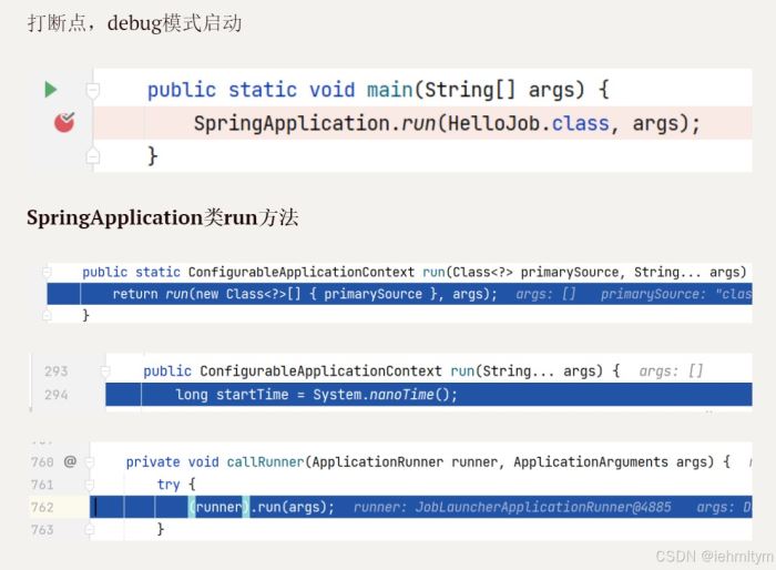 创建job对象交给容器管理,当springboot启动之后,会自动去从容器中加载job对象,并将job对象交给joblauncherapplicationrunner类,再借助joblauncher类实现job执行。