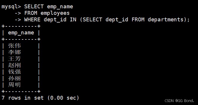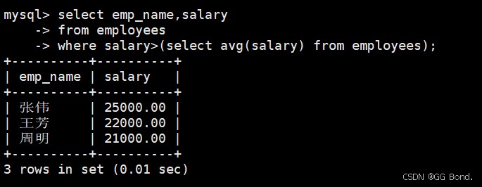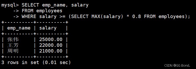 -- 错误示例:子查询返回多行 select emp_name from employees where salary = (select salary from employees where dept_id = 1); -- 正确修改: select emp_name from employees where salary in (select salary from employees where dept_id = 1);