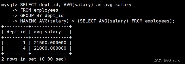 select dept_id, avg(salary) as avg_salary from employees group by dept_id having avg(salary) > (select avg(salary) from employees);