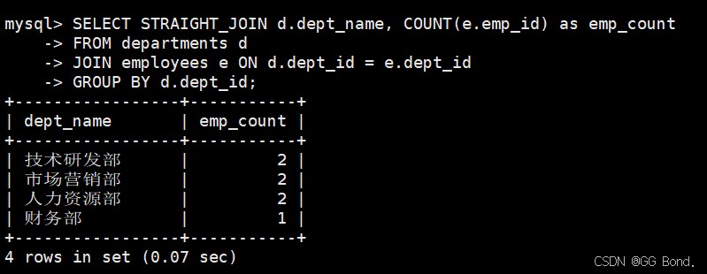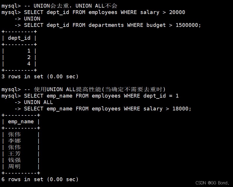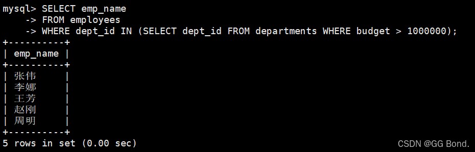 -- 不推荐 select emp_name from employees where dept_id in (select dept_id from departments where location = '北京总部'); -- 推荐 select e.emp_name from employees e join departments d on e.dept_id = d.dept_id where d.location = '北京总部';