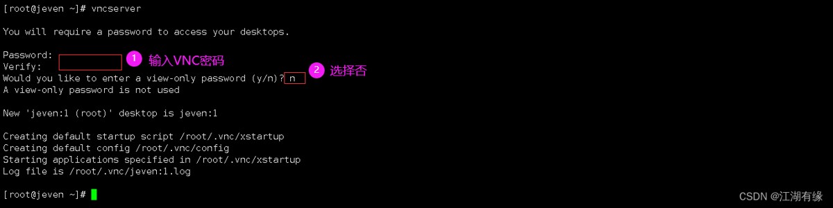 直接使用vncserver命令启动ncserver服务,设置vnc访问密码。