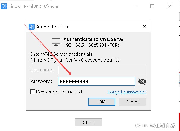 输入设置的vnc密码,即可远程连接linux桌面了。