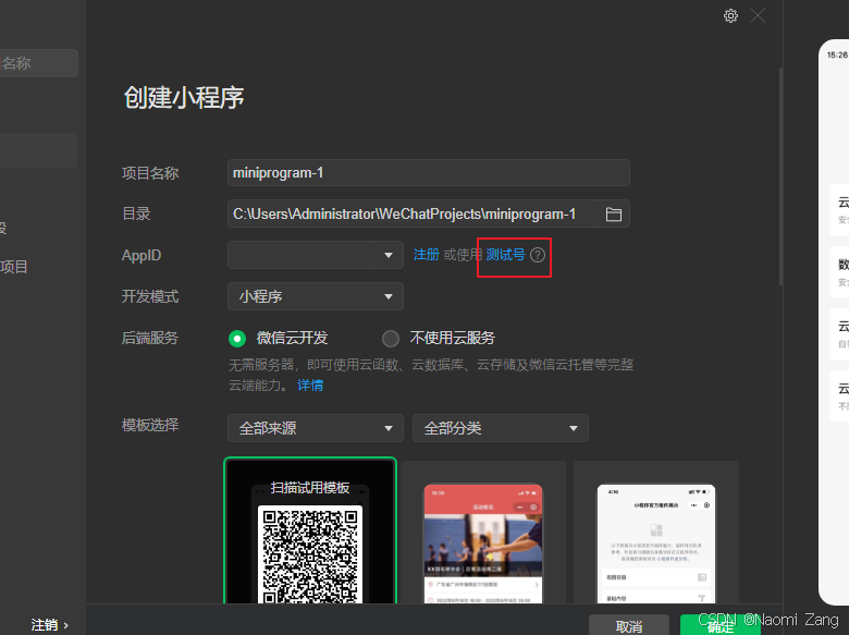 - 启动微信小程序开发工具(测试账号)