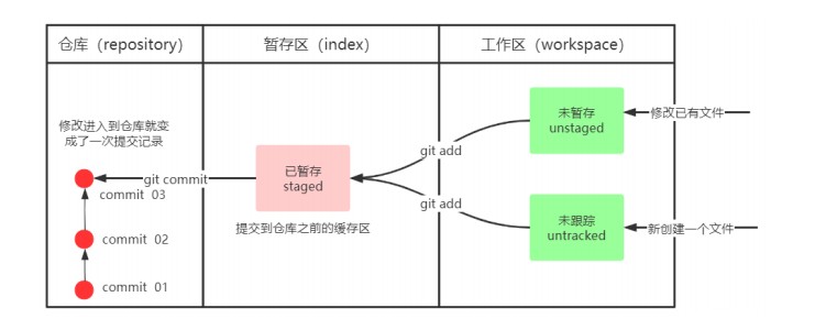 - 暂存区(index):一个准备提交到仓库的文件的缓存区域。