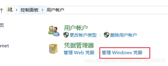 - 不同版本的windows可能有些许的不同,但是总体上都是大同小异,找到凭证管理器即可