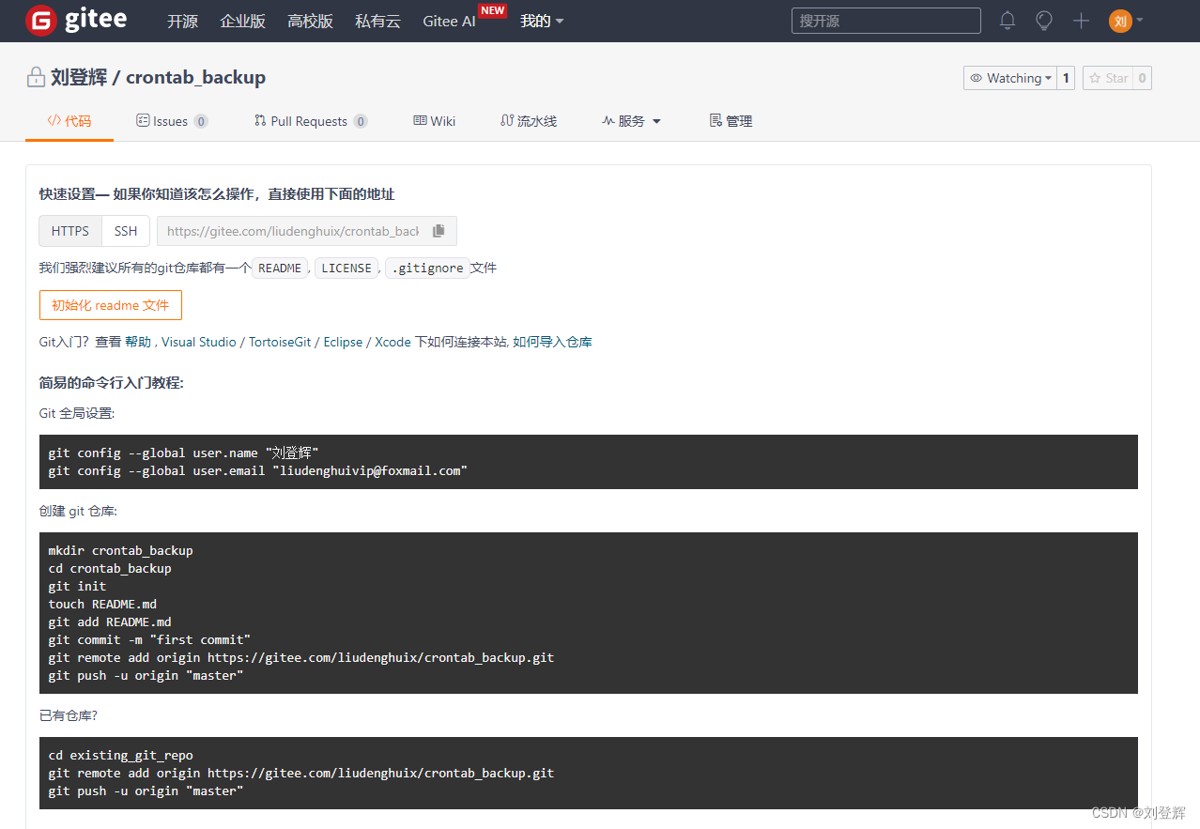 设置之前我们先去看下gitee项目中有没有上传的备份文件