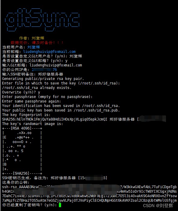 1.设置你git的用户名和邮箱,这里填写你再git的邮箱和用户名就可以了