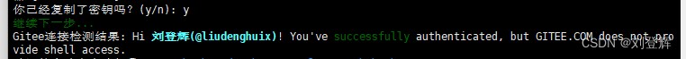 gitee连接检测结果: hi 刘登辉(@liudenghuix)! you've successfully authenticated, but gitee.com does not provide shell access.