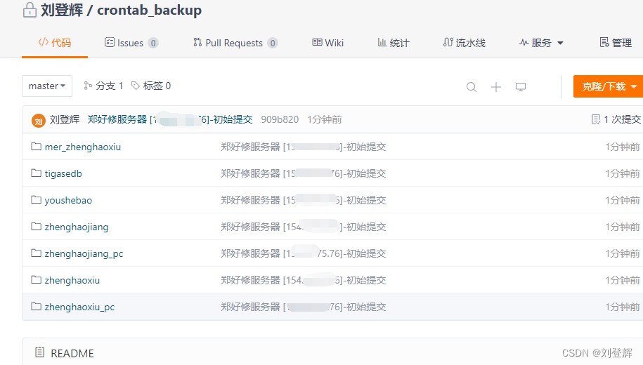 可以看到,初始化的时候显示的是 备注+ip初始化提交,计划任务提交的时候显示的是gitsync脚本推送外加备注信息