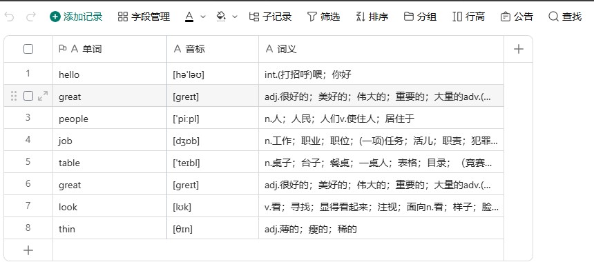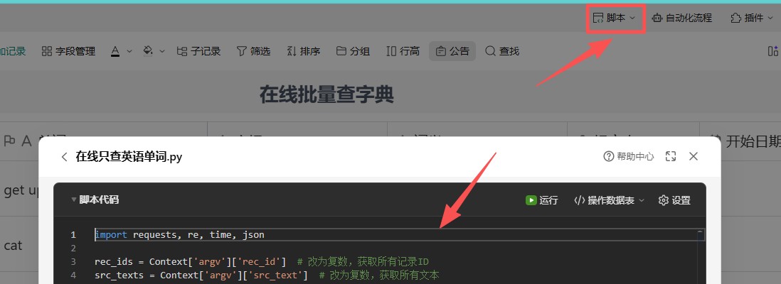 到此这篇关于python结合wps多维表实现在线批量查词功能的文章就介绍到这了,更多相关python查词内容请搜索代码网以前的文章或继续浏览下面的相关文章希望大家以后多多支持代码网!