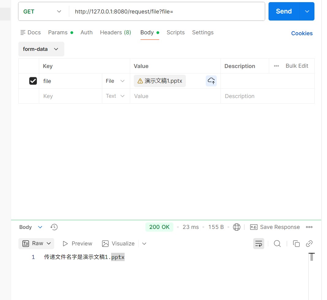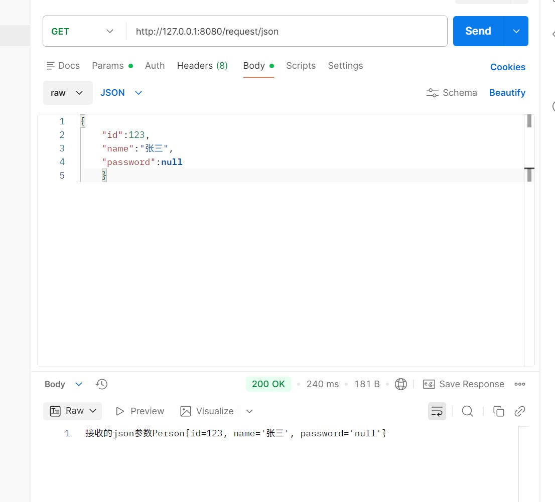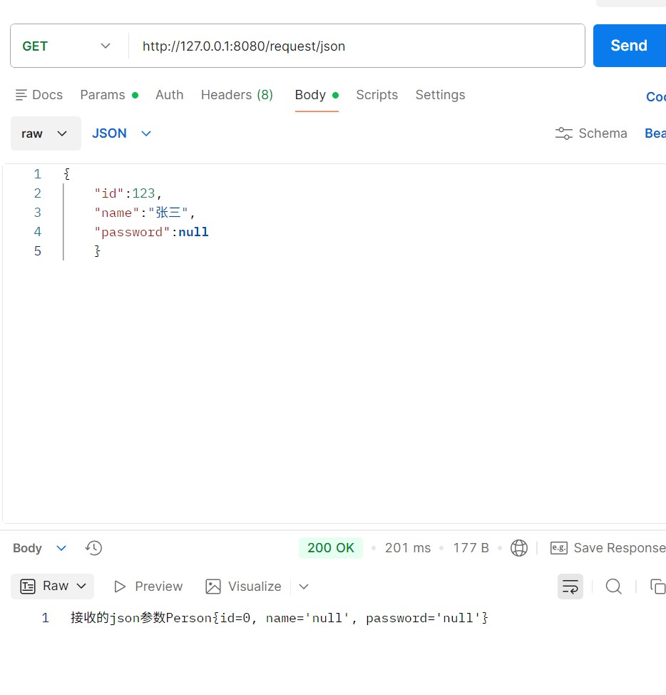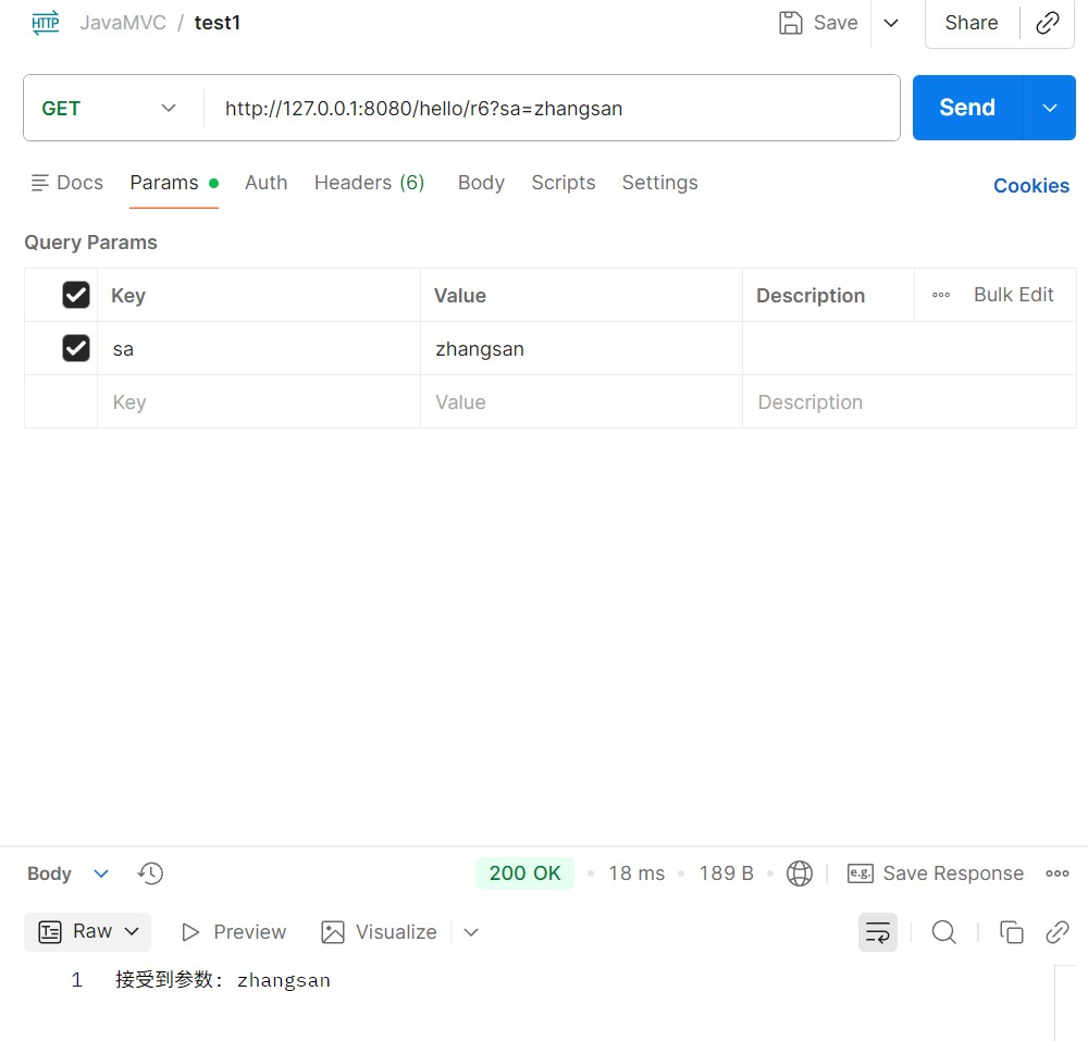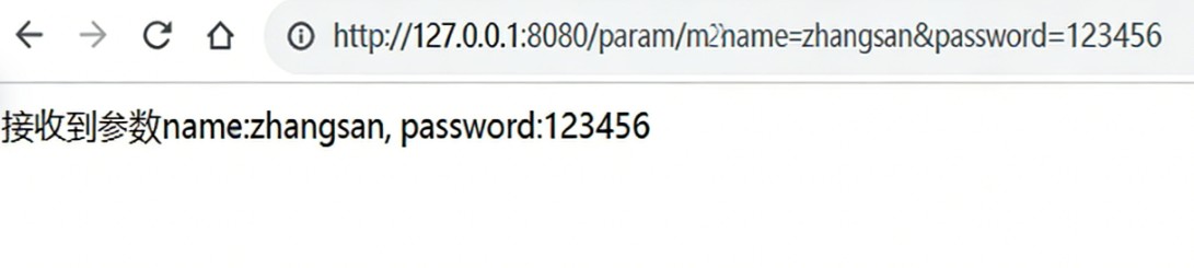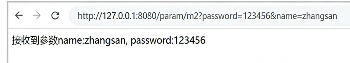 比如访问:http://127.0.0.1:8080/param/m2?password=123456&name=zhangsan 同样可以拿到正 确的结果