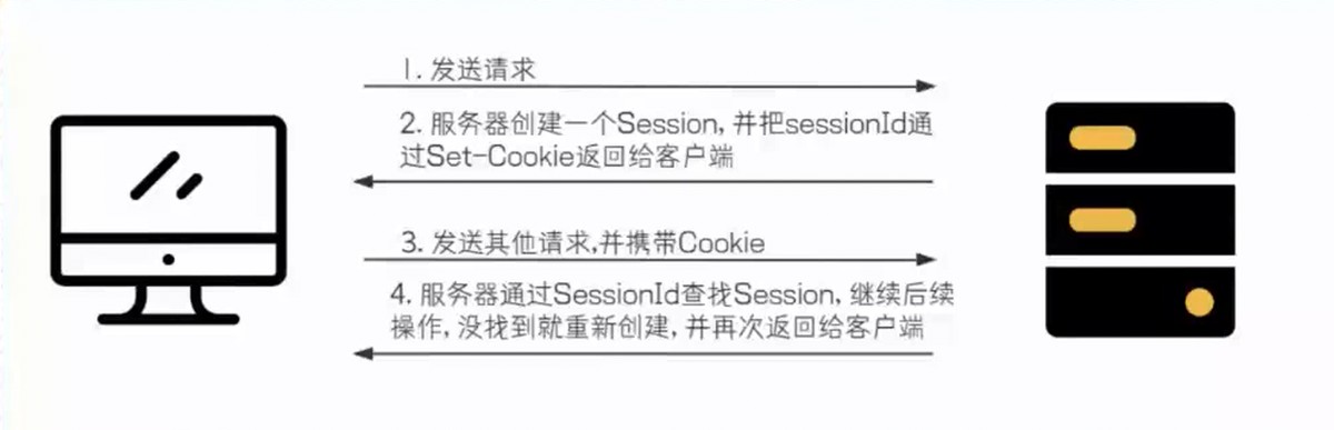 - 服务器收到请求之后,根据请求中的 sessionid 在 session 信息中获取到对应的用户信息,再进行后续操作。找不到则重新创建 session, 并把 sessionid 返回