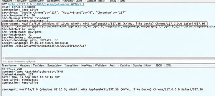 通过 fiddler 观察,获取的 user-agent 是否正确