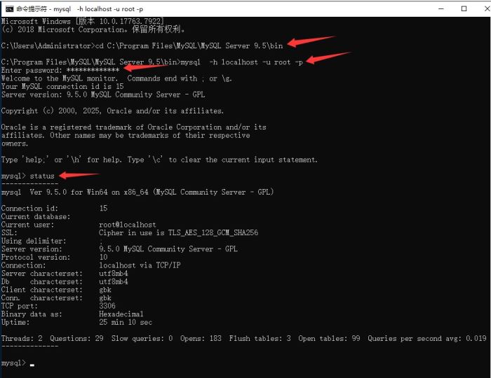 cd c:\program files\mysql\mysql server 9.5\bin mysql -h localhost -u root -p