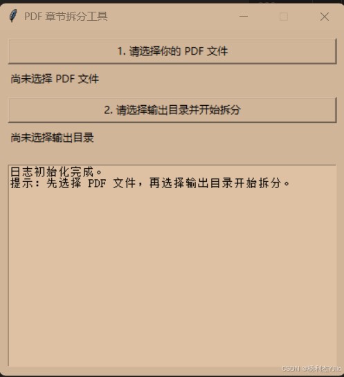 append_log("提示:先选择 pdf 文件,再选择输出目录开始拆分。")
