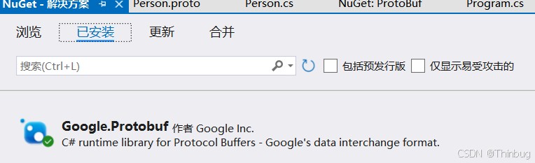 protobuf 的官方 c# 库是 google.protobuf,可以通过 nuget 包管理器来方便的使用。