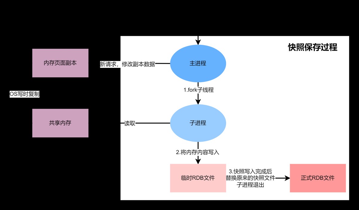 - 4.替换旧快照:当子进程完成快照写入后,会用临时文件替换当前的.rdb 文件,至此一次 rdb 持久化完成。