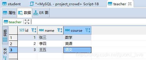 create table `teacher` ( `id` int(11) default null, `name` varchar(100) default null, `course` varchar(100) default null ) engine=innodb default charset=utf8;