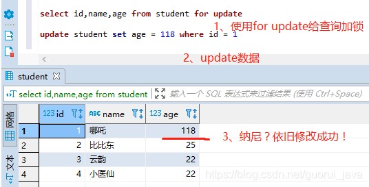 依旧修改成功,原因是mysql默认是自动提交的,因此需要暂时将自动commit关闭