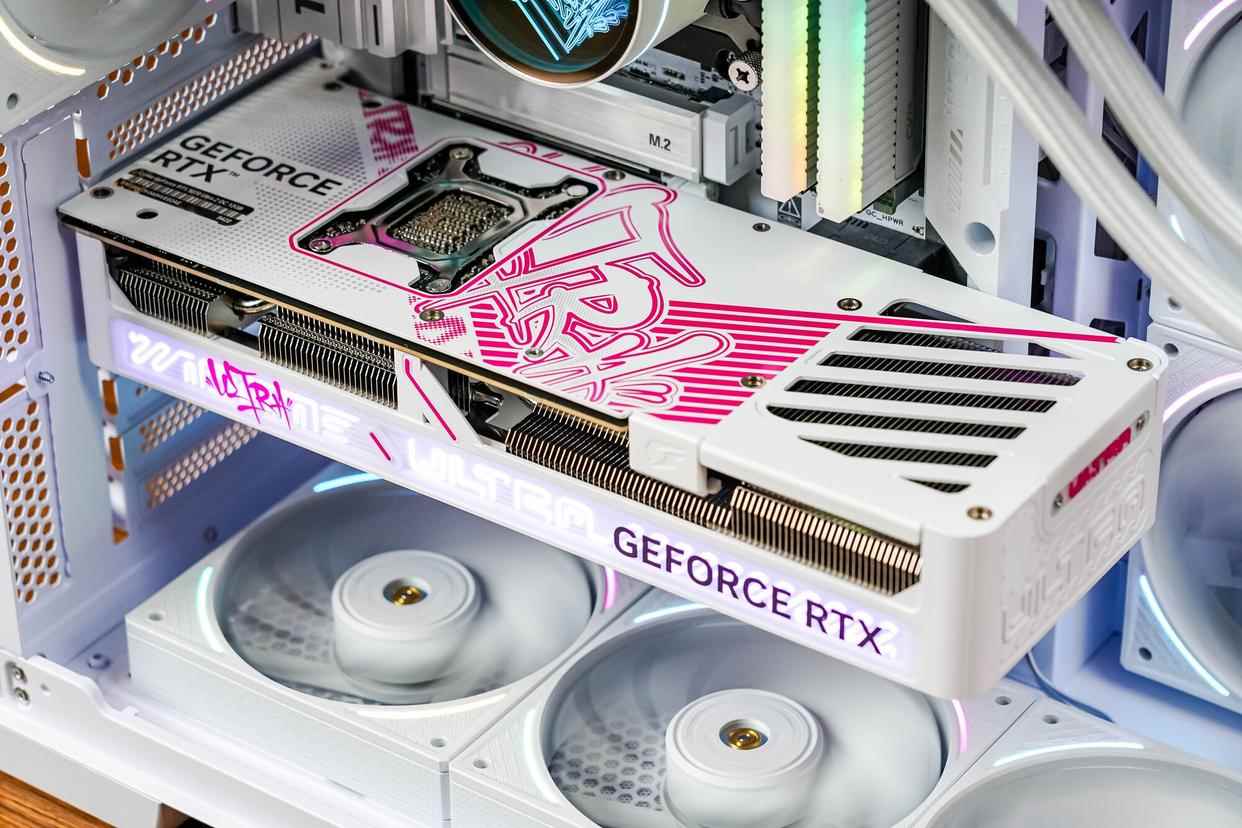 而从美观度来说,目前很多显卡都有侧面灯光,虽然在rtx 50系显卡中,采用单16pin供电,线材更少,但传统的供电方式,从显卡上面走线,影响机箱整体美观度,从显卡下面走线,则影响显卡视觉上的完整性。
