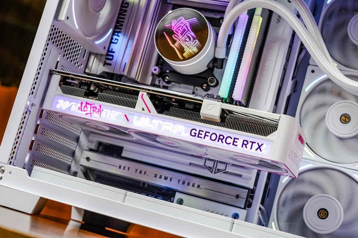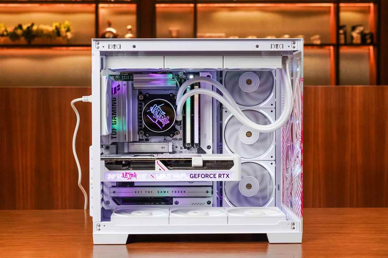 主板采用了华硕b850 btf背插主板,机箱也选择了igame c25h ultra z的背插机箱,整体风格均以igame rtx 50 ultra系列的嘻哈风为主。