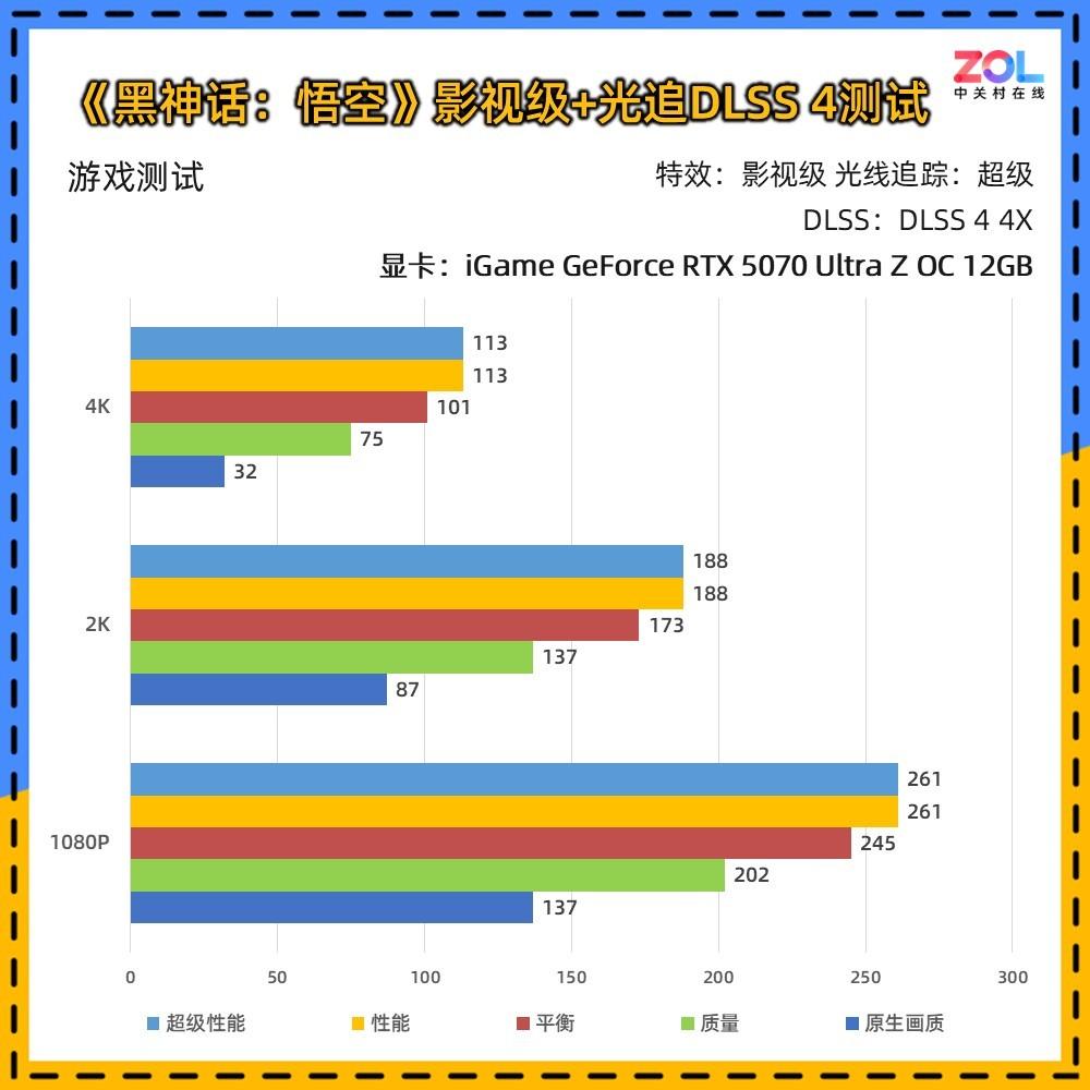 igame rtx 5070 背插显卡经过dlss 4的加持,4k分辨率下超级画质达到167帧。而如果想在光追画质下游戏,可选择2k分辨率,光追超级画质可达到200帧以上的超高帧率,即便次世代的光追加速画质,同样可以达到151帧的电竞级帧率。
