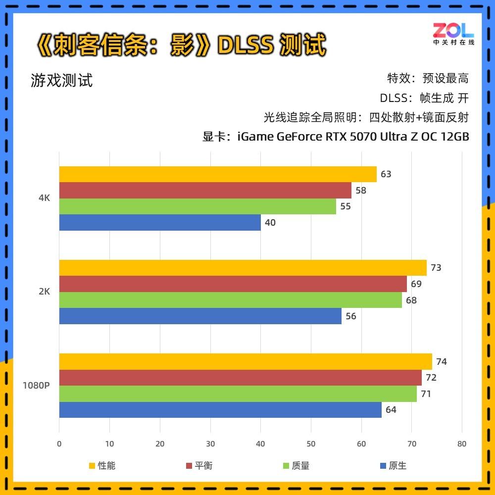 在《刺客信条:影》中,测试开启最高特效,并开启光线追踪全局照明,分别测试dlss不同挡位与原生画质下的差异。但在游戏大更新后,低分辨率下仍然存在些问题,帧数与高分辨率几乎相同。