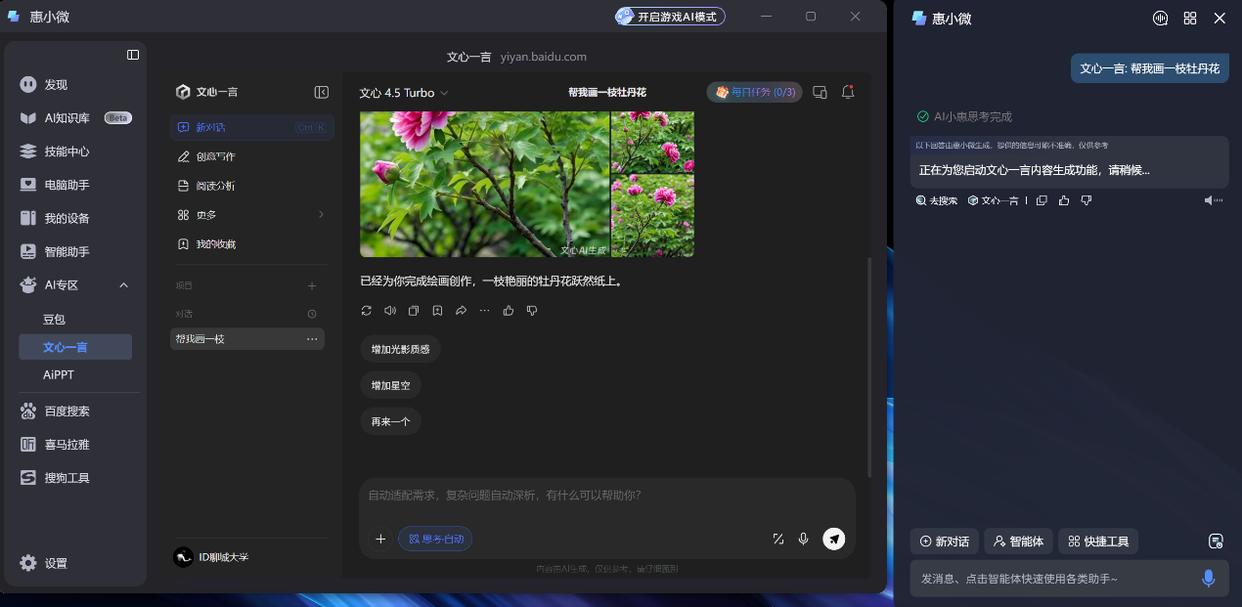 惠小微则是超聪明的ai小秘书。使用ai软件其实需要有一定的基础,比如哪些资料能上传,哪些资料不能上传,哪些ai软件能处理什么样的需求等等,多数ai助理并没有帮助用户如何去判断,只是提供功能而已。而惠小微则是ai智慧中枢,它能智能处理用户需求,并根据需求分配最适合的ai应用。惠小微可以一键调用豆包、wpsai、文心一言等ai软件,也不需要了解哪个ai软件有哪些功能,很方便。