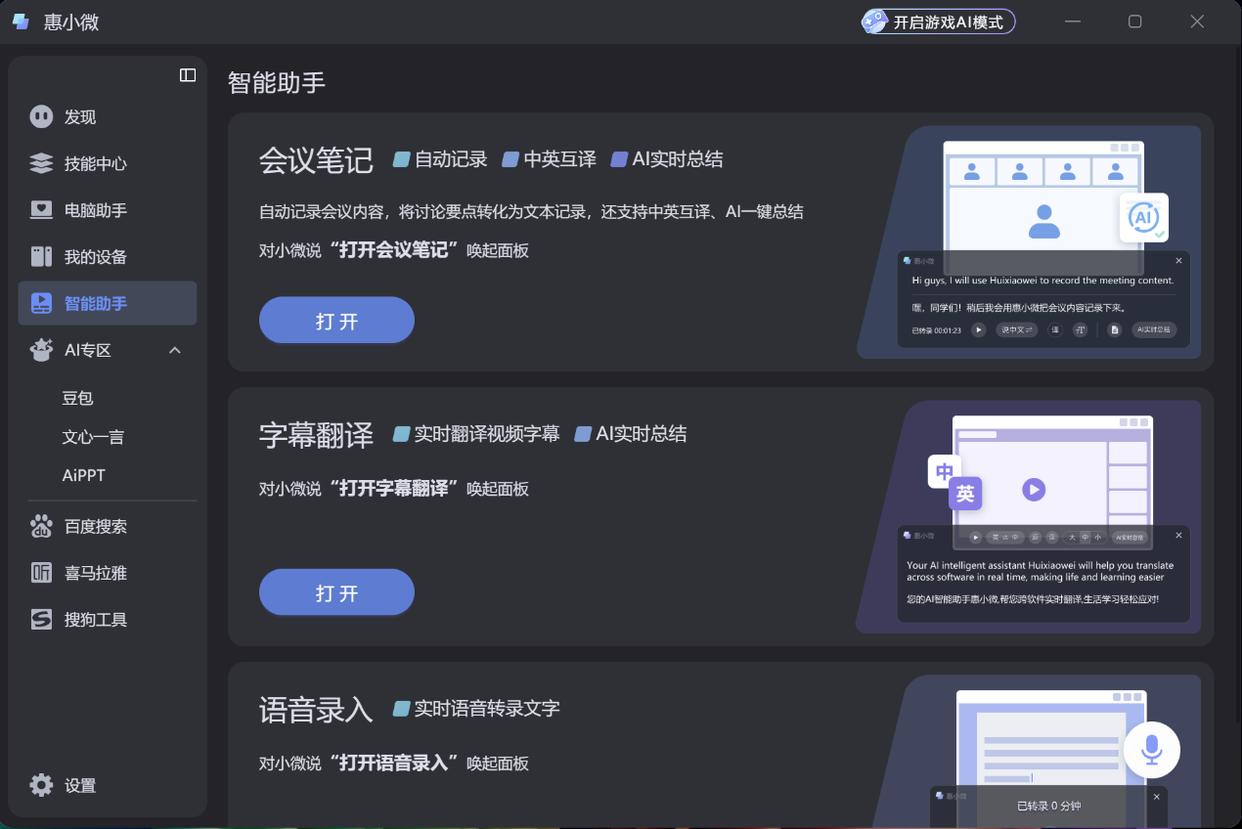 惠小微甚至还是ai游戏助手,其内置了游戏ai模式,不仅有专属的二次元桌宠,游戏中还可以通过语音互动的方式获取游戏攻略,还能得到一定的情绪价值,很有意思。