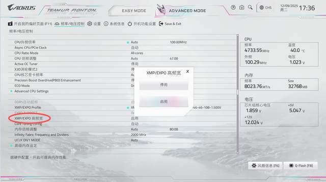 进入到advanced mode菜单后,往下拉找到xmp/expo高频宽选项,点击启用即可开启技嘉d5黑科技也就一键小参优化。